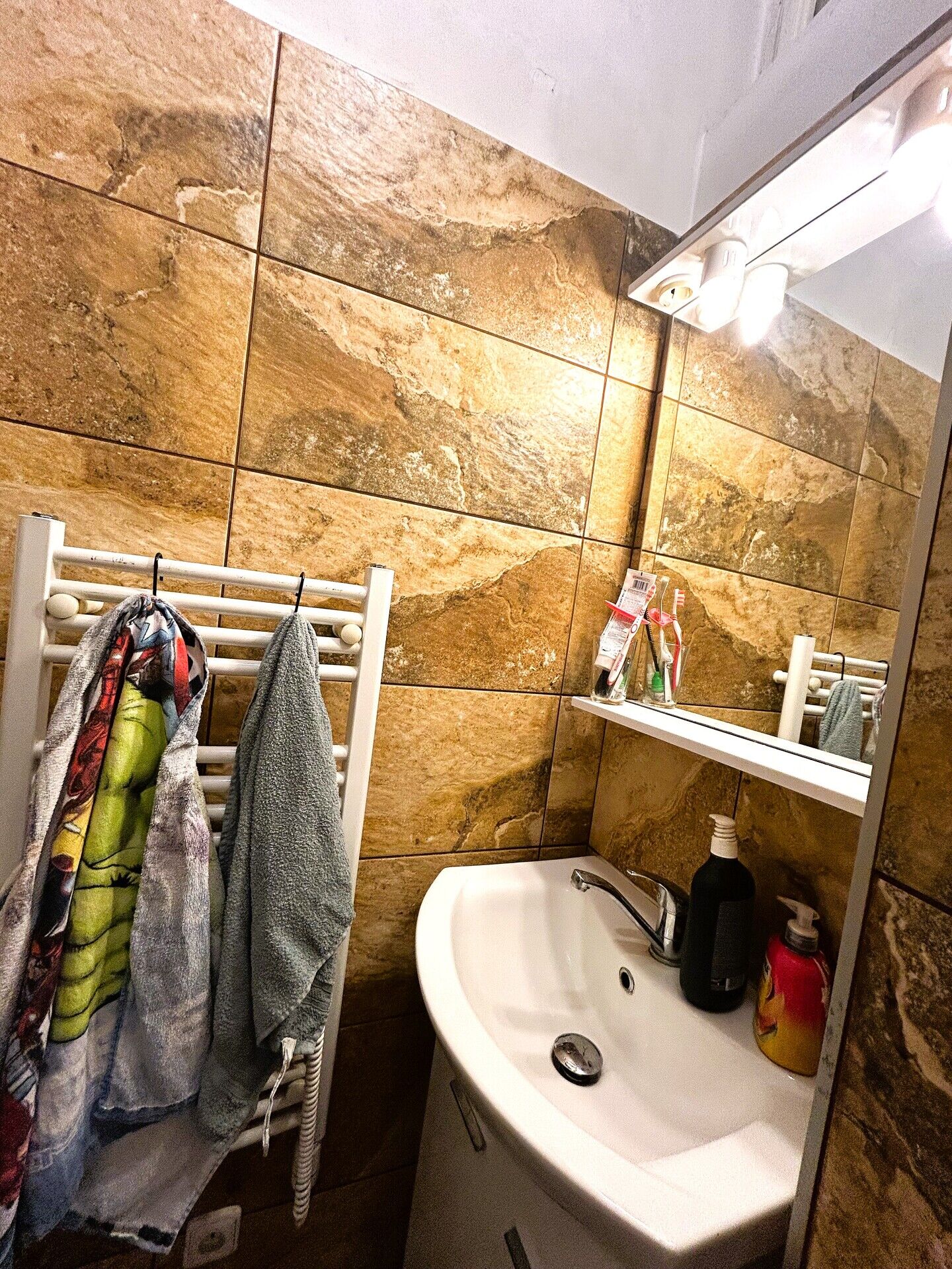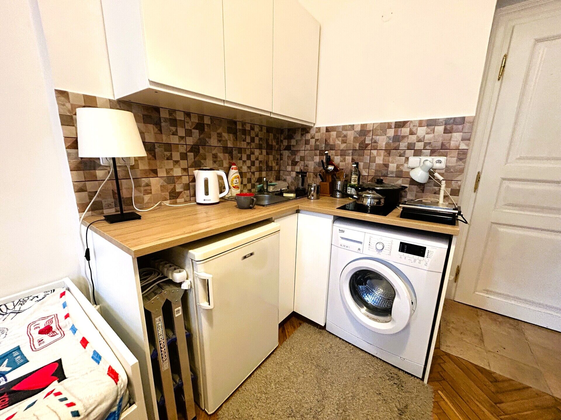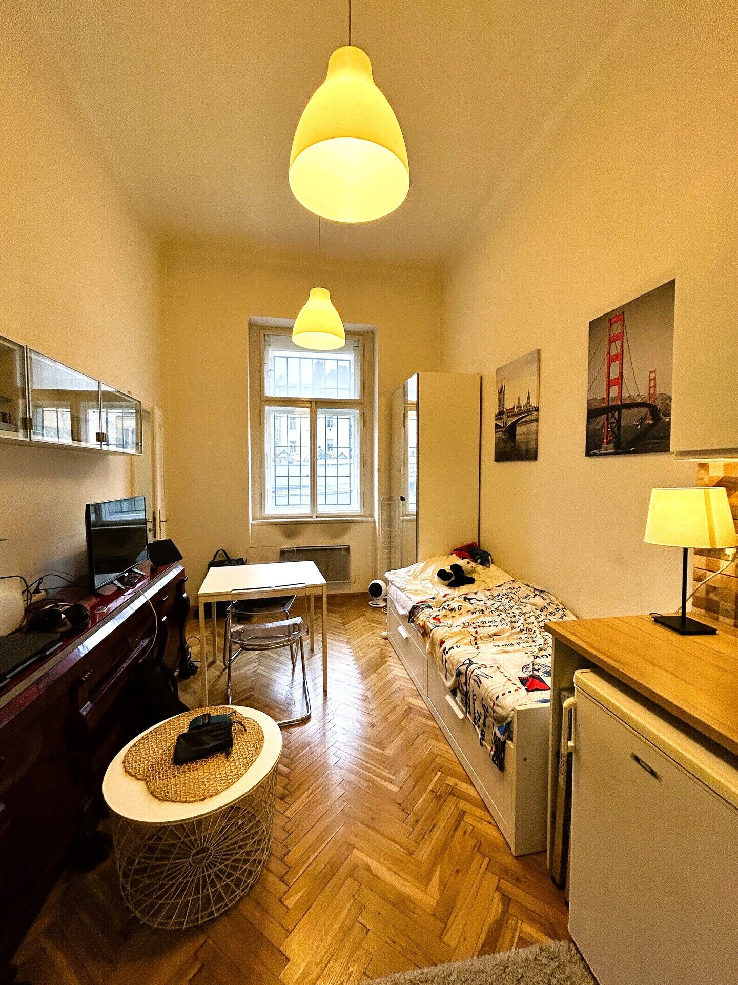 Nabízíme k pronájmu krásný, slunný byt 1+kk, 18,5 m2 v 1. NP činžovního domu bez výtahu. Byt disponuje pokojem s kuchyňským koutem orientovaným do vnitrobloku, koupelnou a samostatnou toaletou. V koupelně se nachází umyvadlo, sprchový kout a elektrický bojler, který zajišťuje ohřev vody. Kuchyňská linka je vybavena elektrickou varnou deskou, lednicí a pračkou. Byt je částečně vybaven (jednolůžková postel, skříň, komoda, stůl + židle, TV a další drobný nábytek). Na podlaze v pokoji se nachází dubové parkety. Vytápění bytu je zajištěno elektrickým přímotopem.